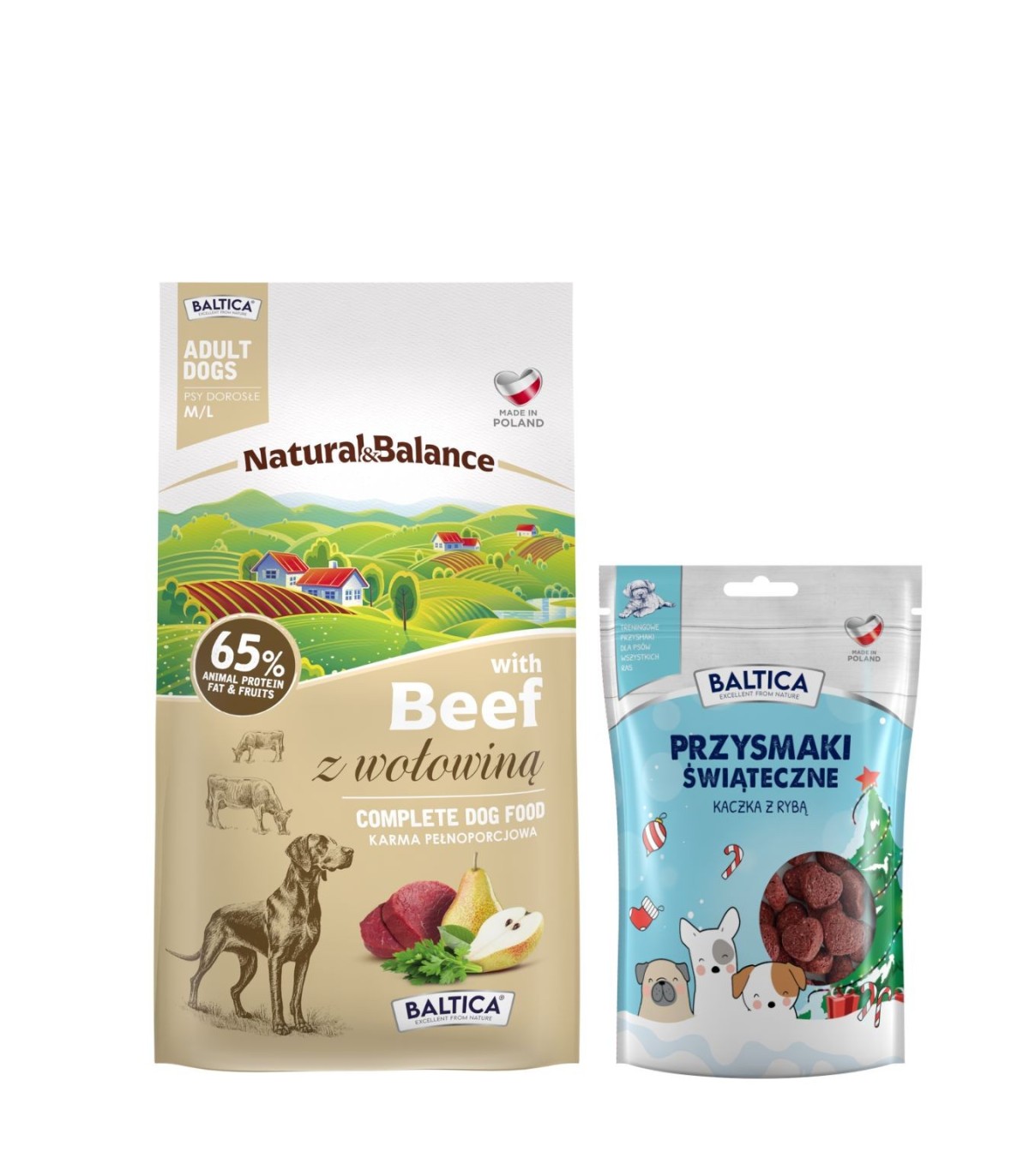 Wołowina dla ras średnich i dużych karma 3kg - Baltica Natural & Balance + Przysmaki świąteczne 100g