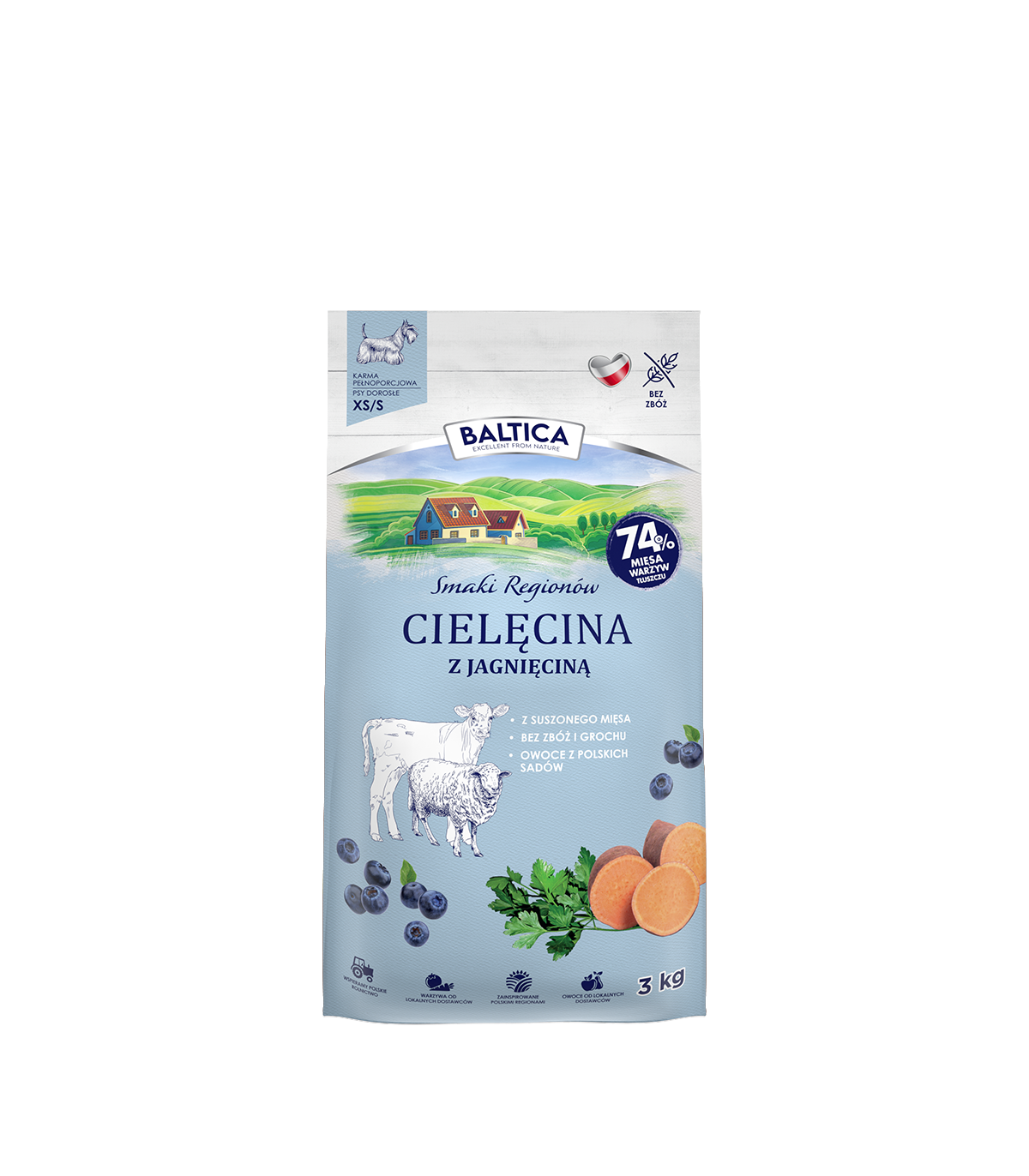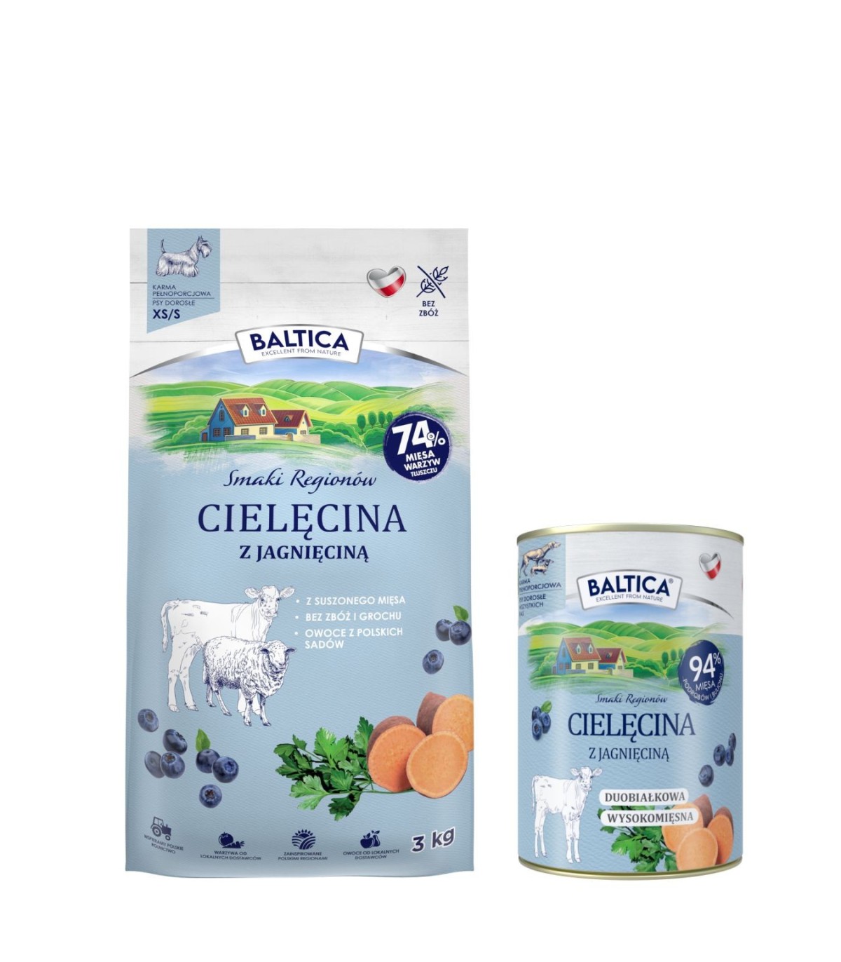 Cielęcina z jagnięciną dla ras małych i miniaturowych karma 3kg - Baltica Smaki Regionów + karma mokra dla psa 400g