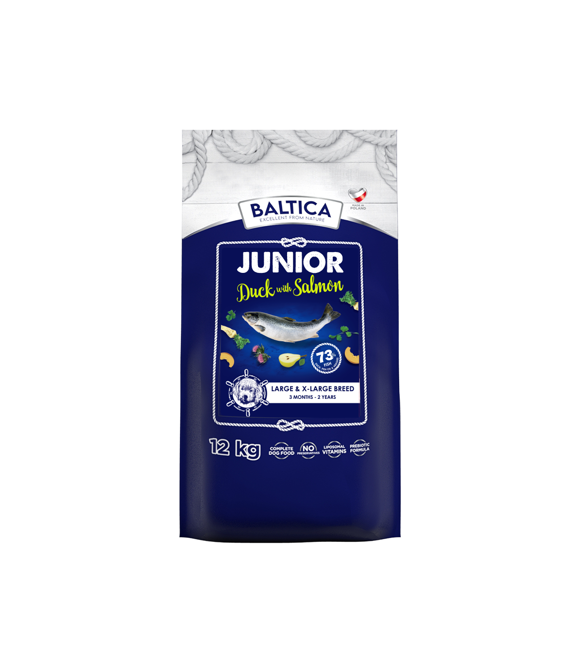 Kaczka z łososiem dla szczeniąt ras dużych i olbrzymich karma 12kg - Baltica Excellent