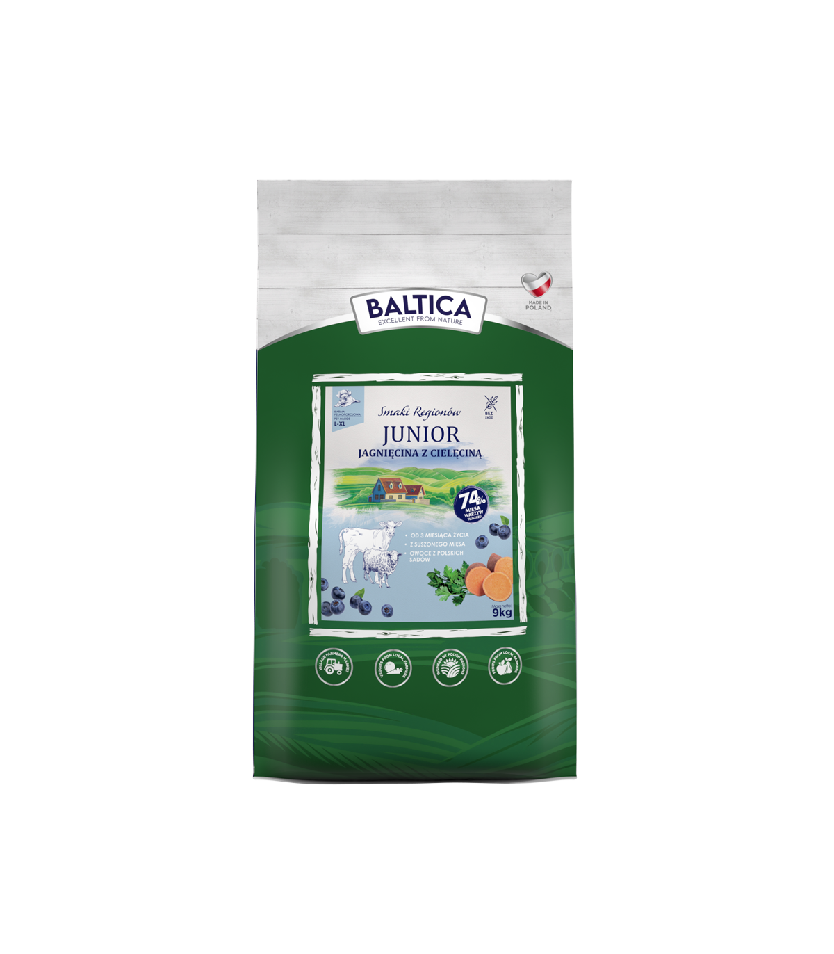 Jagnięcina z cielęciną dla szczeniąt ras dużych i olbrzymich karma 9kg - Baltica Smaki Regionów