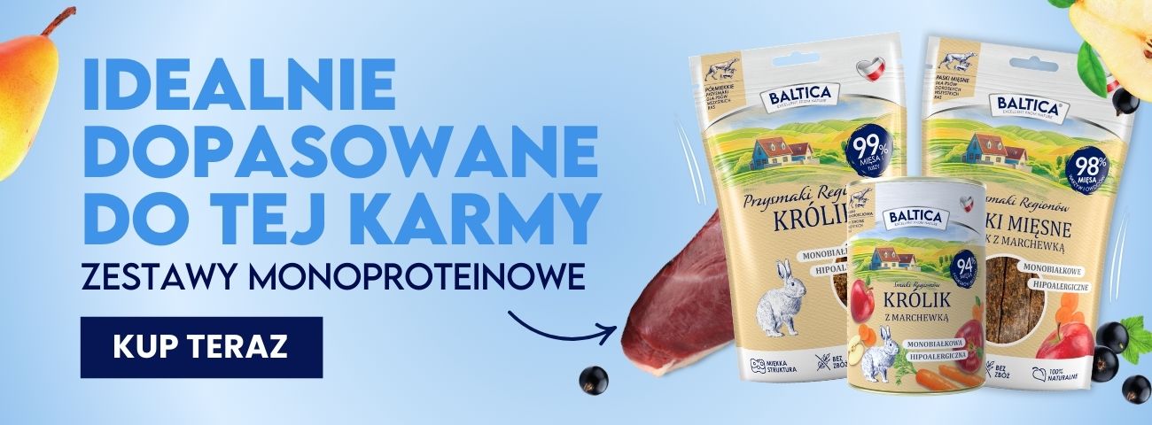 Pełnoporcjowa mokra karma super premium z linii Smaki Regionów, stworzona z myślą o codziennym, bezpiecznym i wartościowym żywieniu psów dorosłych lub seniorów. Monobiałkowa receptura oparta na króliku czyni ją idealnym wyborem dla psów o wrażliwym przewodzie pokarmowym, wybrednych smakoszy oraz zwierząt wymagających diety eliminacyjnej.