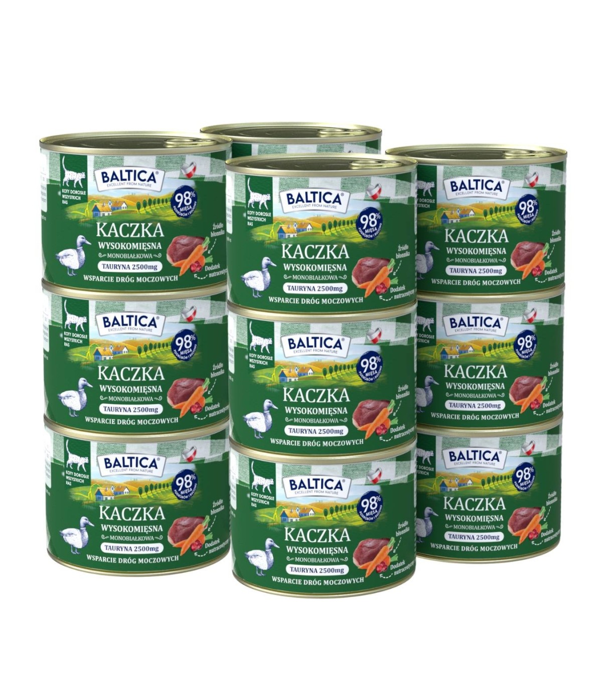 Baltica Kaczka karma wysokomięsna to świadomie opracowana receptura, która łączy tradycyjne podejście do naturalnego żywienia z nowoczesną wiedzą dietetyczną. Zapewnia Twojemu kotu wszystko, czego potrzebuje, by cieszyć się zdrowiem, dobrą kondycją i codzienną porcją przyjemności w misce.