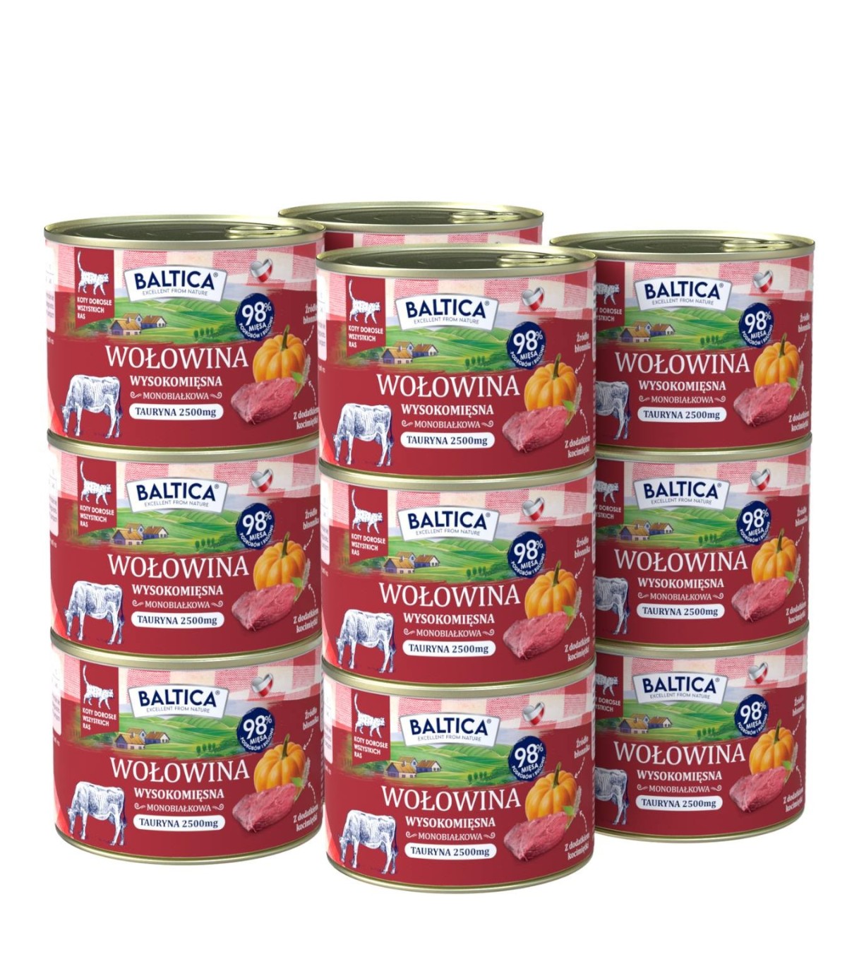 Baltica Wołowina karma wysokomięsna to świadomie opracowana receptura, która łączy tradycyjne podejście do naturalnego żywienia z nowoczesną wiedzą dietetyczną. Zapewnia Twojemu kotu wszystko, czego potrzebuje, by cieszyć się zdrowiem, dobrą kondycją i codzienną porcją przyjemności w misce.