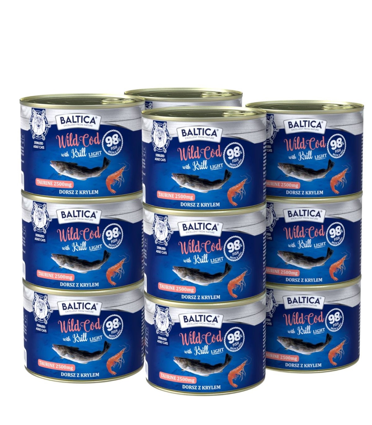 Wysokomięsna, bezzbożowa karma mokra light dla kotów dorosłych, stworzona z wyjątkowego duetu mięs kryla i dzikiego dorsza z dodatkiem krewetki. Ta pełnowartościowa, niskokaloryczna receptura, opracowana specjalnie z myślą o kotach sterylizowanych oraz ze skłonnością do nadwagi, wspiera utrzymanie prawidłowej masy ciała bez kompromisów w smaku.