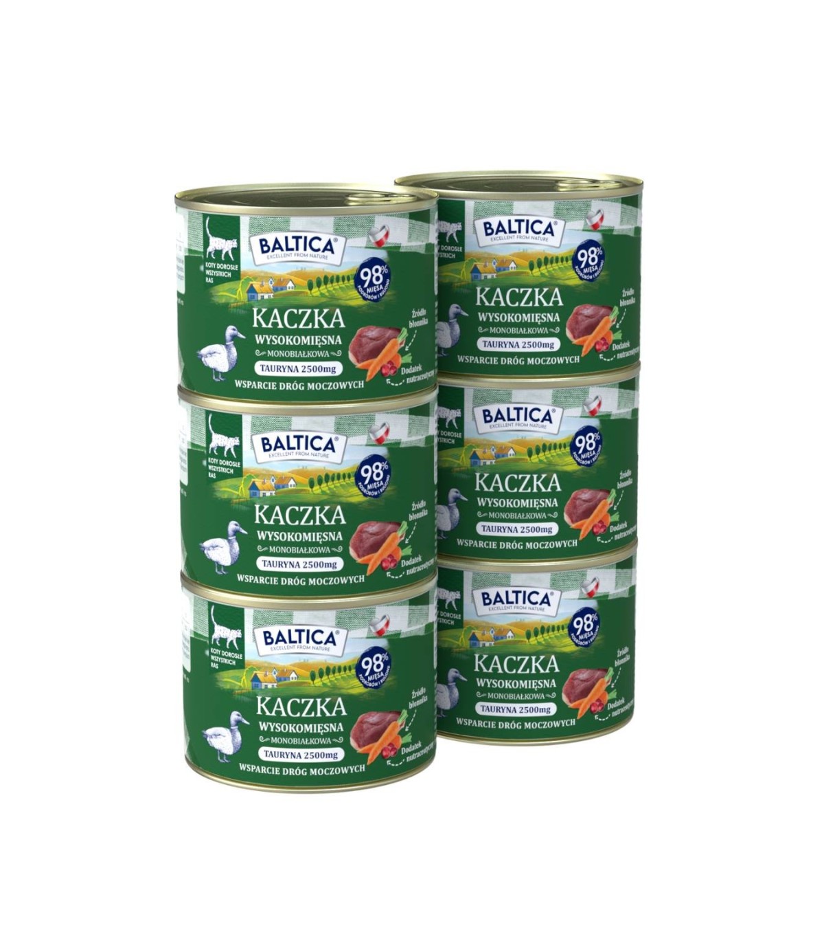 Baltica Kaczka karma wysokomięsna to świadomie opracowana receptura, która łączy tradycyjne podejście do naturalnego żywienia z nowoczesną wiedzą dietetyczną. Zapewnia Twojemu kotu wszystko, czego potrzebuje, by cieszyć się zdrowiem, dobrą kondycją i codzienną porcją przyjemności w misce.