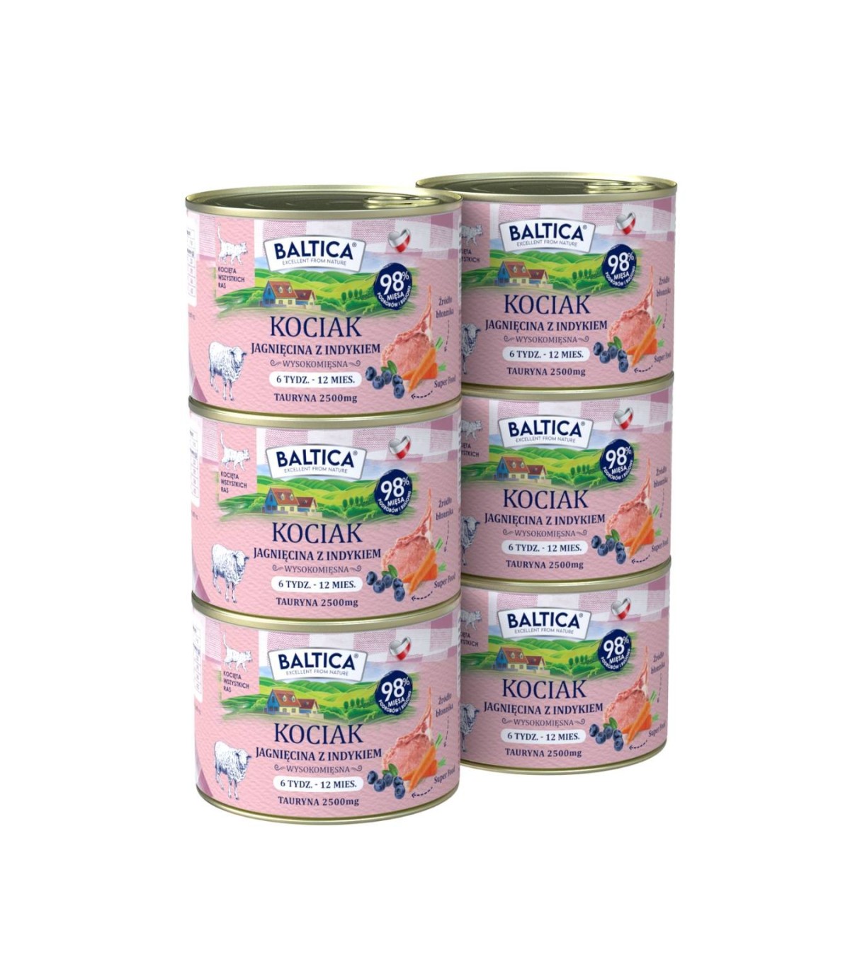 6x Karma mokra dla kociąt z jagnięciną i indykiem 185g - Baltica Smaki Regionów